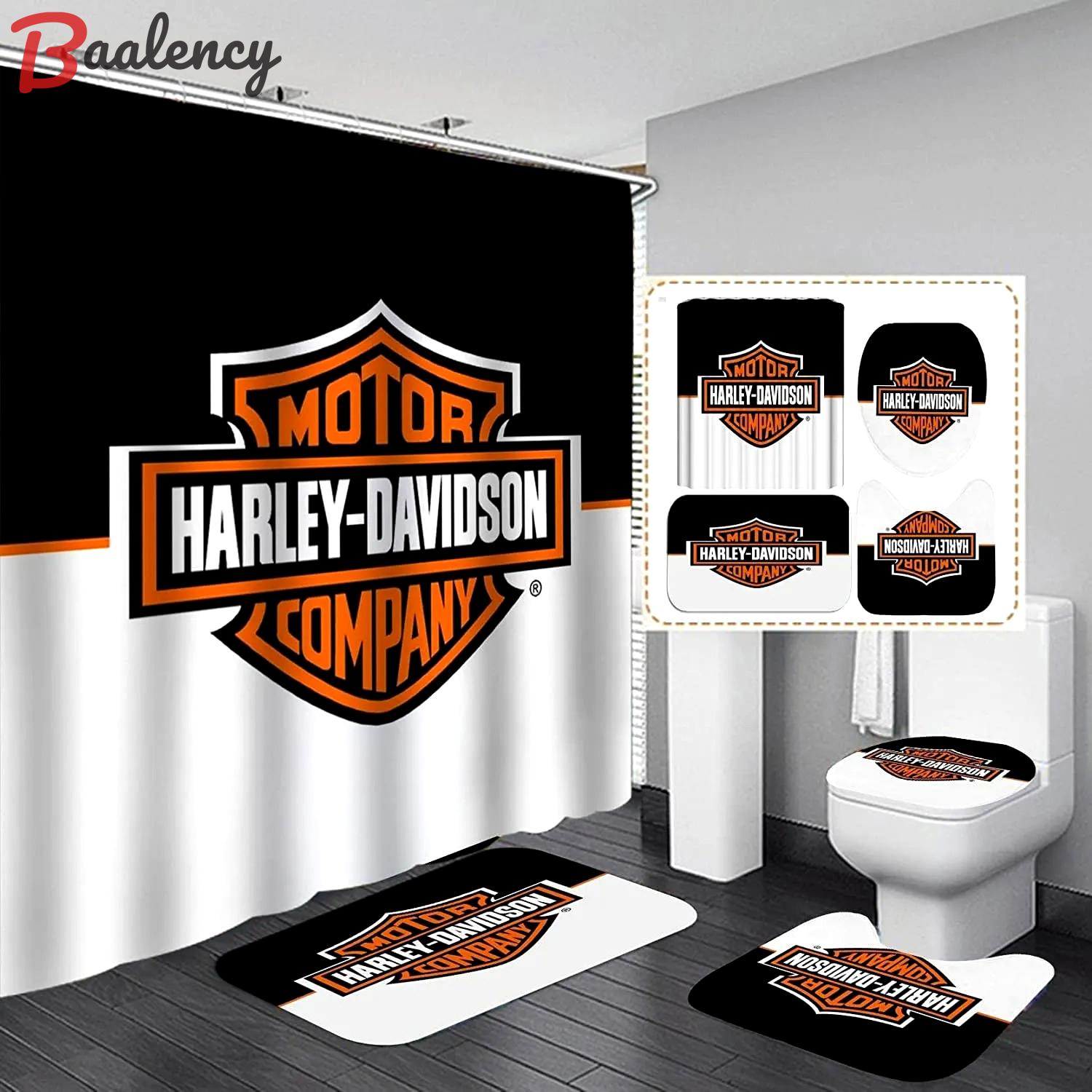 Gift for fans - harley davidson black and white bathroom set- shower curtain set harley davidson shower curtain amazon