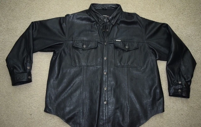 HARLEY DAVIDSON MENS MEDIUM CLASSIC Leather Shirt Jacket Supple Snap 98111-98VM $179.95 - PicClick harley davidson shirt vintage mens