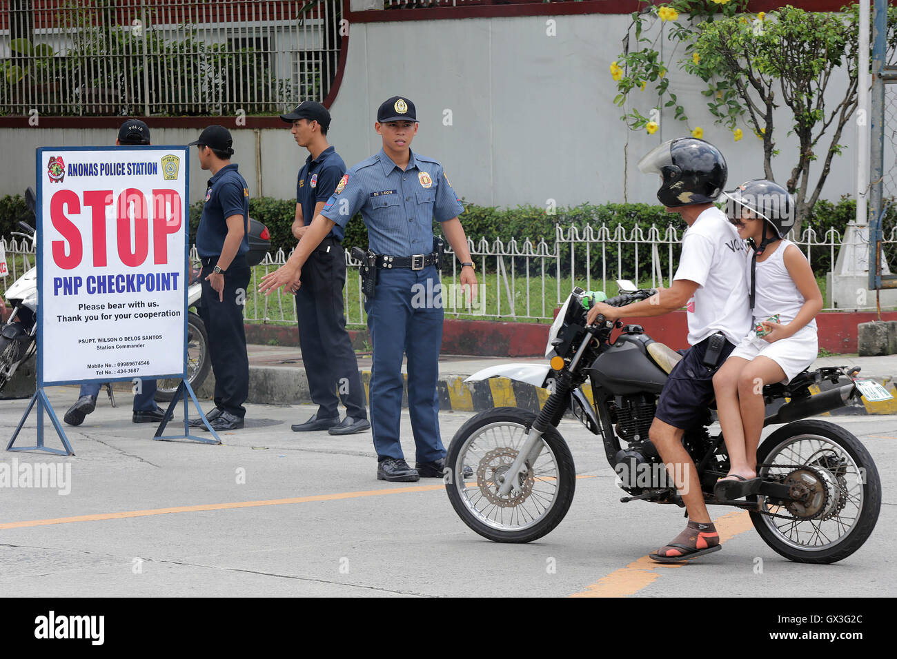 Quezon City, Philippines. 15th Sep, 2016. Policemen from the Philippine National Police (PNP pnp checkpoint motorcycle