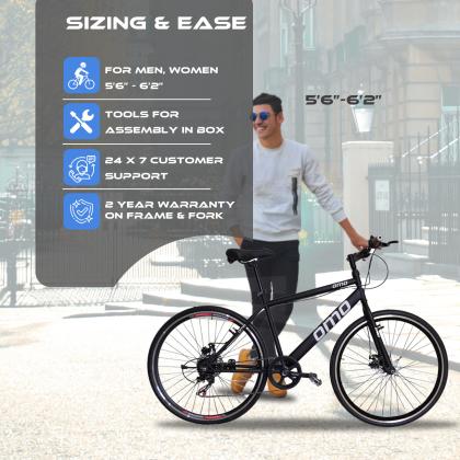 OMO Hampi 707 Shimano 7 Speed Hybrid Cycle, 700c, 18" Frame for Men Woman and Adults (Yellow