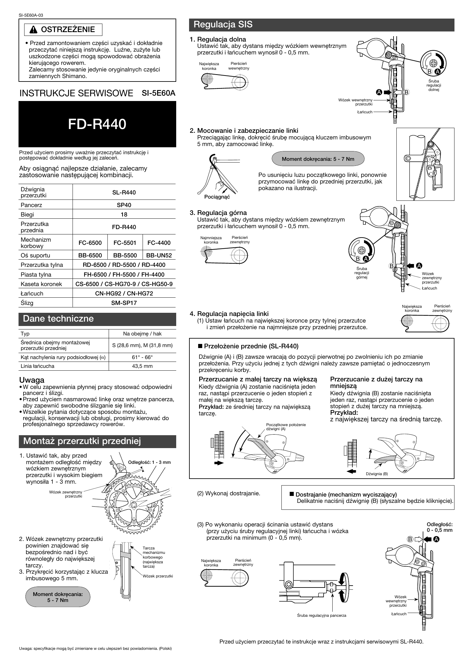 Shimano FD-R440 User manual | Manualzz shimano r440