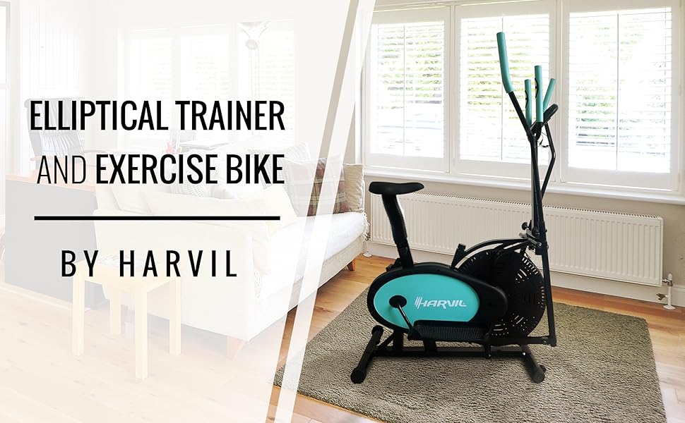 Harvil Elliptical Cross Trainer and Exercise Bike 2 in 1 with Pulse Rate Sensor Grips and harvil bike