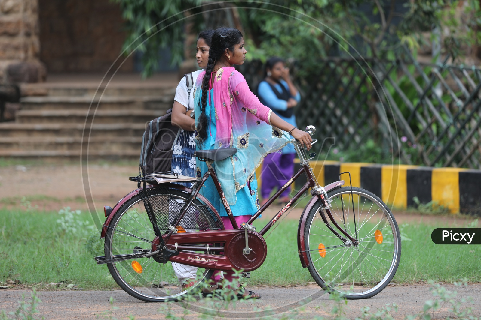 Image of Indian college girls with ladies bicycle-UI028692-Picxy cycle in girls